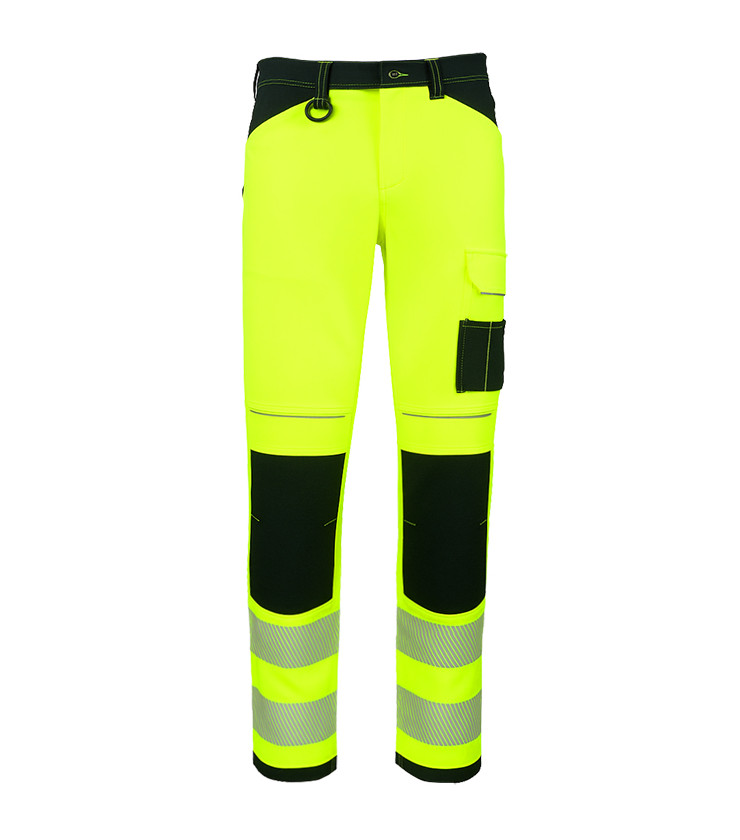 Spodnie robocze wykonane z elastycznej tkaniny (94% poliester, 6% elastan) o gramaturze 210 g/m². Doskonała rozciągliwość materiału zapewnia pełną swobodę ruchów i wysoki komfort noszenia podczas aktywności. Jasny kolor w połączeniu z odblaskowymi elementami zwiększa widoczność i bezpieczeństwo w warunkach ograniczonego oświetlenia. Idealne do pracy w wymagających warunkach, gdzie liczy się wygoda i bezpieczeństwo