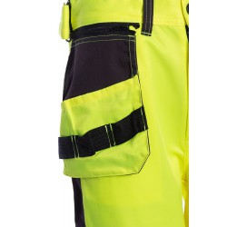 Kieszenie dolne: na lewej nogawce boczna naszywana kryta patką zapinana na rzep, na prawej nogawce naszywana podwójna kieszonka na drobne narzędzia